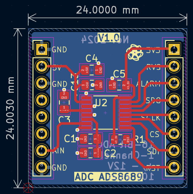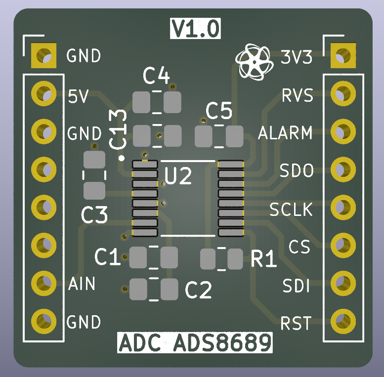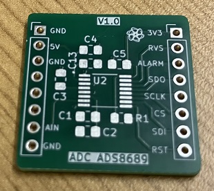 I developed a simple PCB board that allows testing the ADS8689 with different types of microcontrollers.