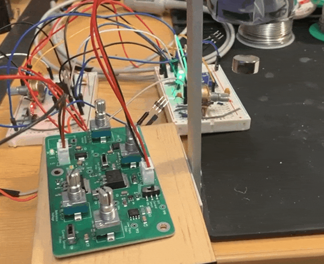 I was having a challenge on controlling the position of the magnet. It turns out that the coil current noise/EMI was coupling into the hall effect sensor, making it impossible to control. By including a LPF, that calms the “fast stuff” (PWM ripple, coil spikes, and wiring pickup), and the controller will work properly.