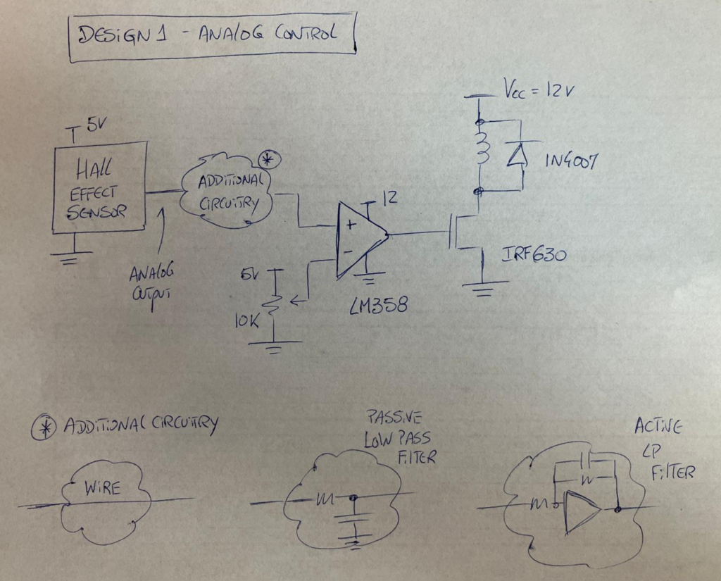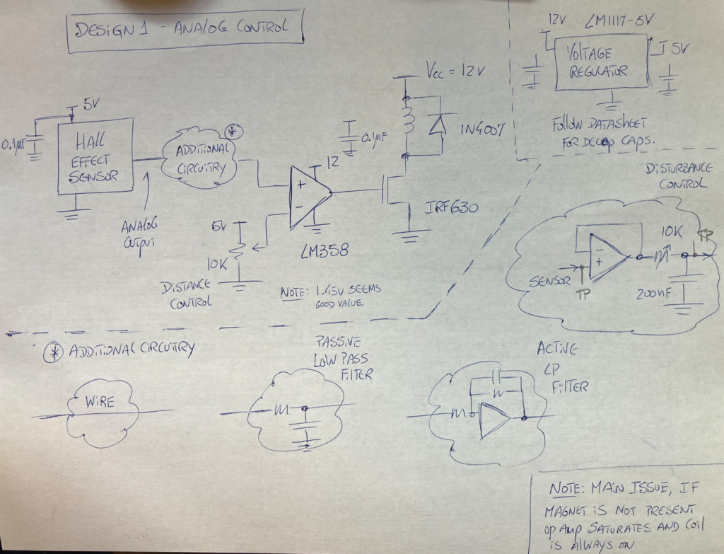 Iteration 2 has a power comsumption issue. When the magnet is not present, the Op Amp saturates and the coil is always on, pulling maximum currrent, and making the MOSFET “hot” 🥵