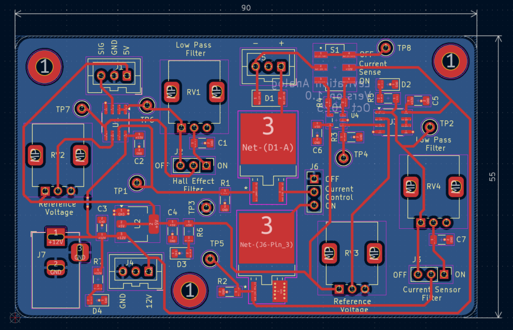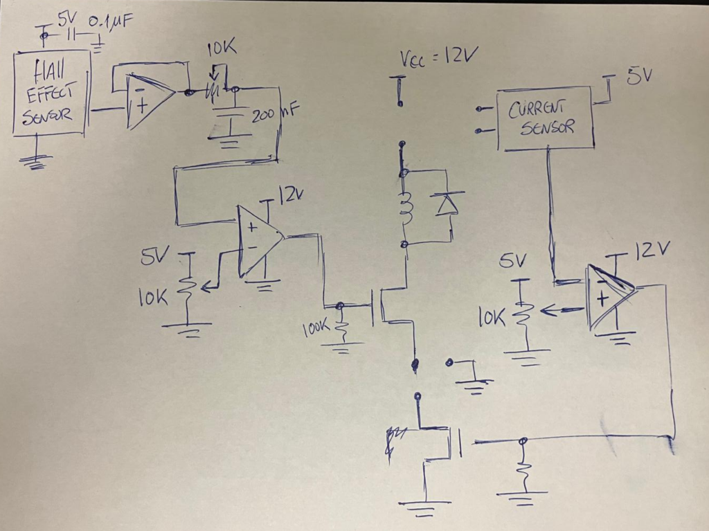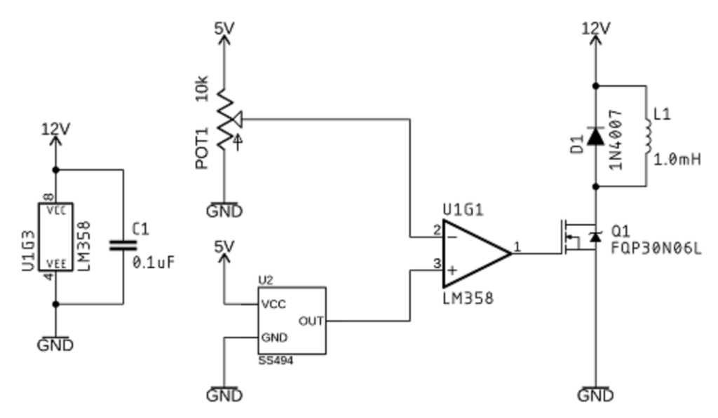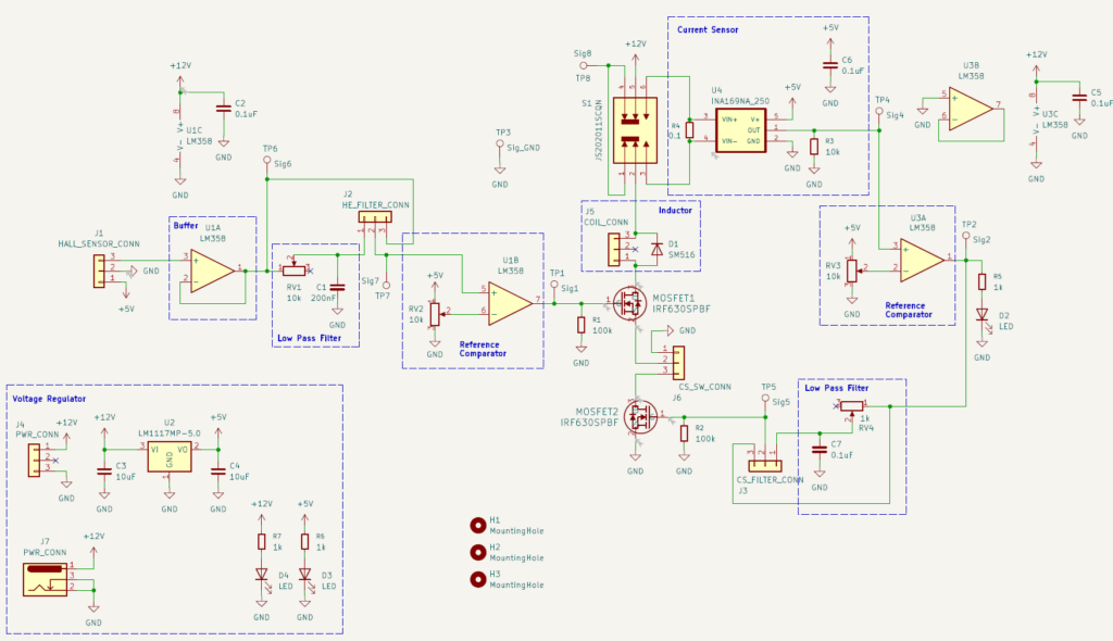 The low-pass filter between the hall effect sensor and Op Amp was also redesigned with a buffer in between so the LPF doesn’t load and interfere with the hall effect sensor.