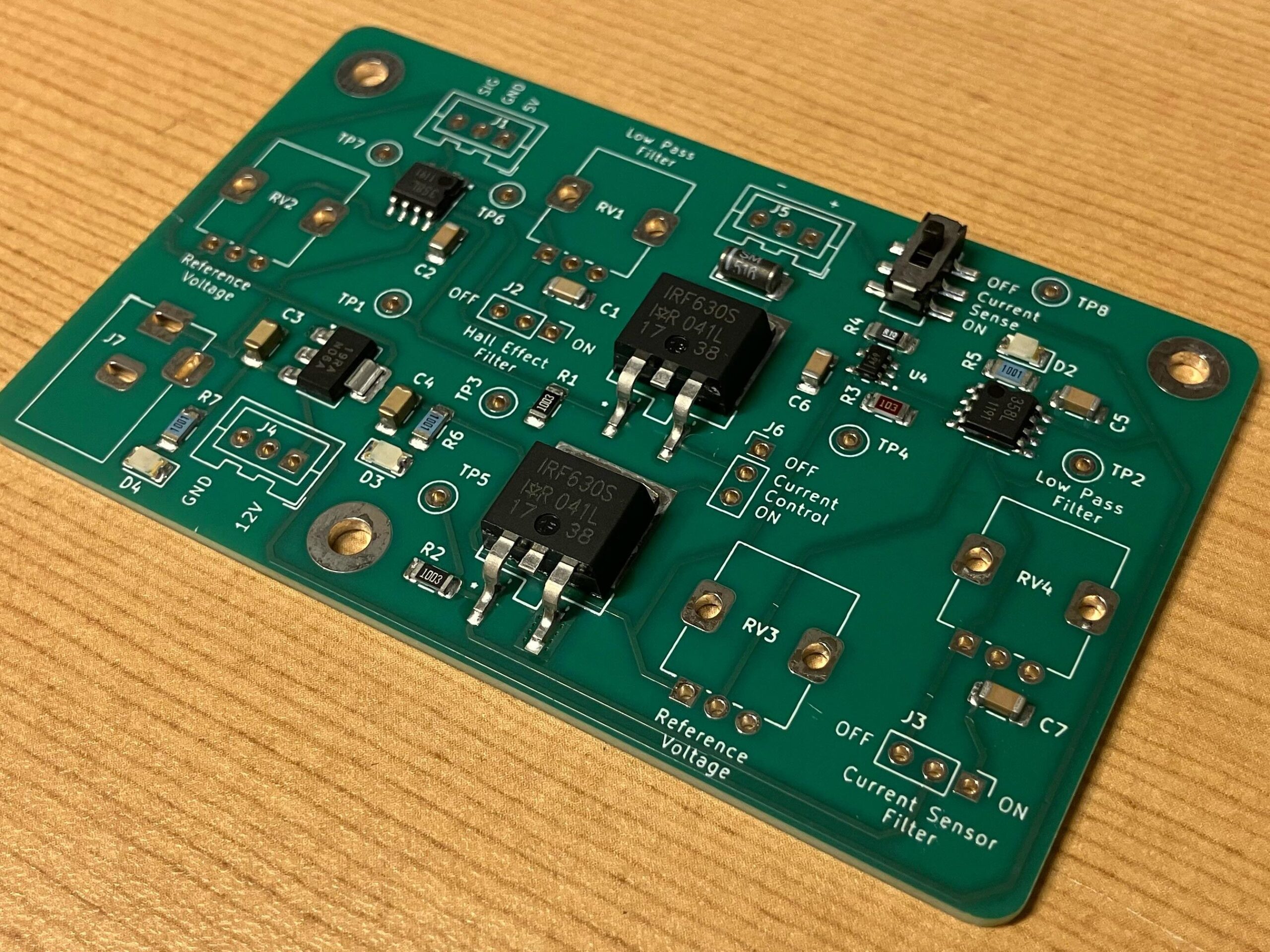 For the final interaction, I added an additional LPF between the second MOSFET and the current sensor comparator, and added some additional jumpers so I could test the system for different configurations.