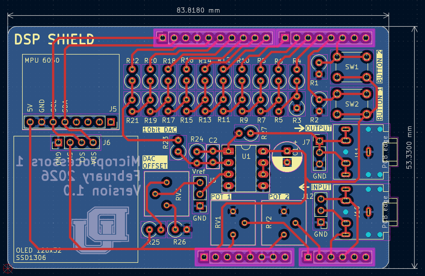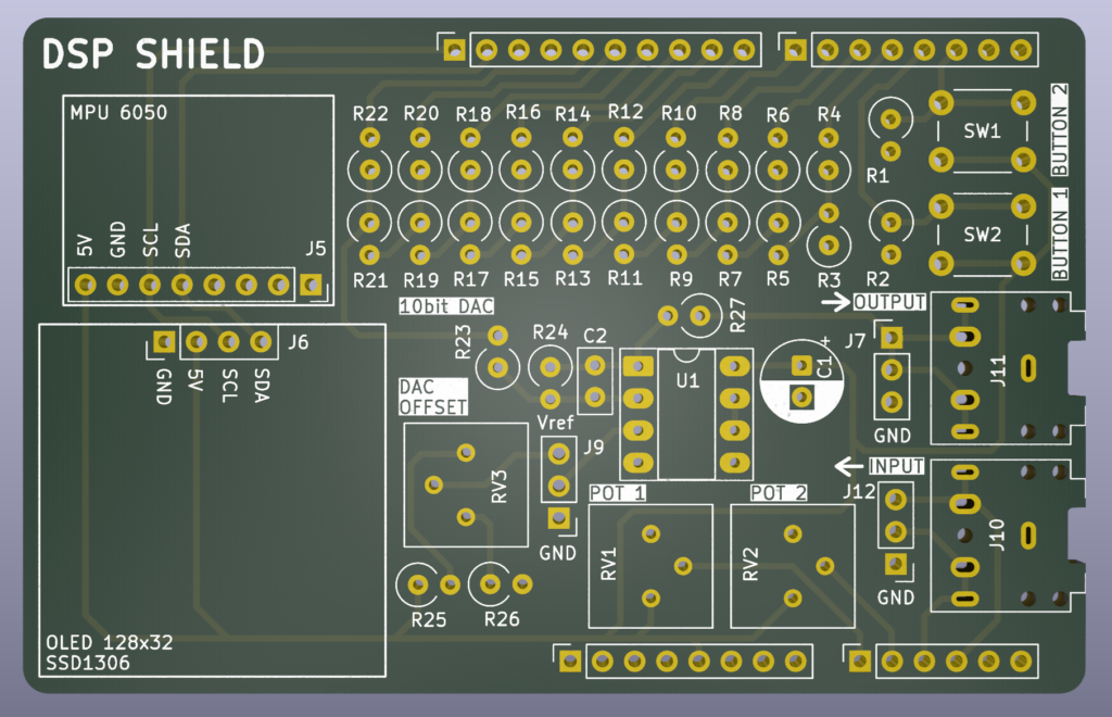 The main goal with this project is to introduce students that are learning microprocessors for the first time to the design of an Arduino Uno shield, where they can implement embedded systems concepts such as interrupt routines, timers, mixed signals (ADCs and DACs) and digital communications (I2C , SPI, UART, and CAN).