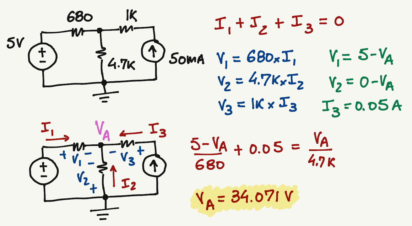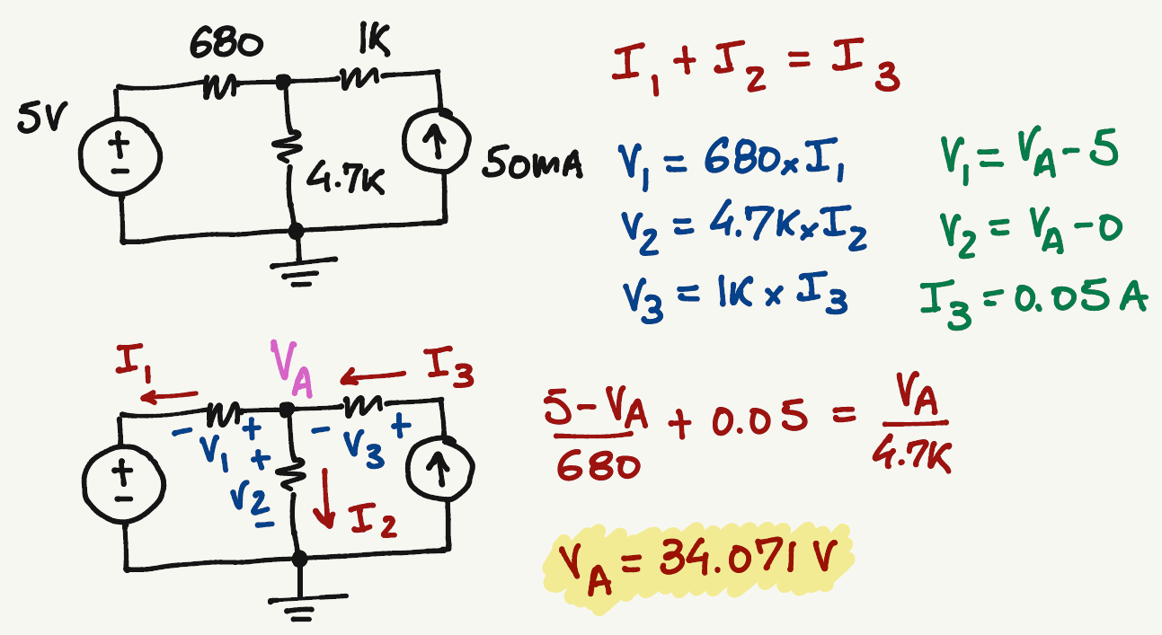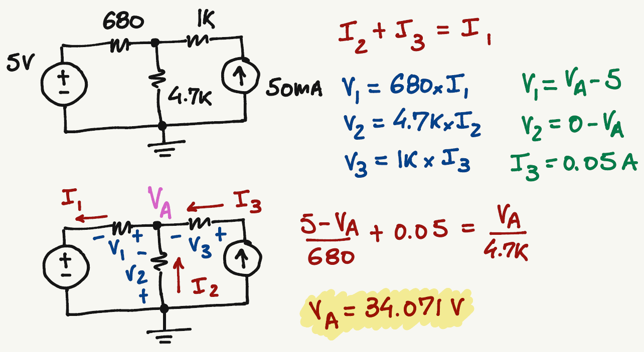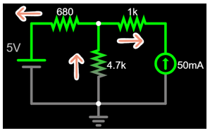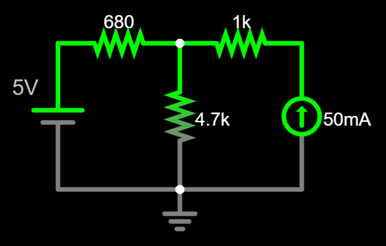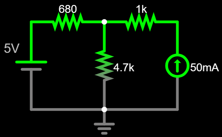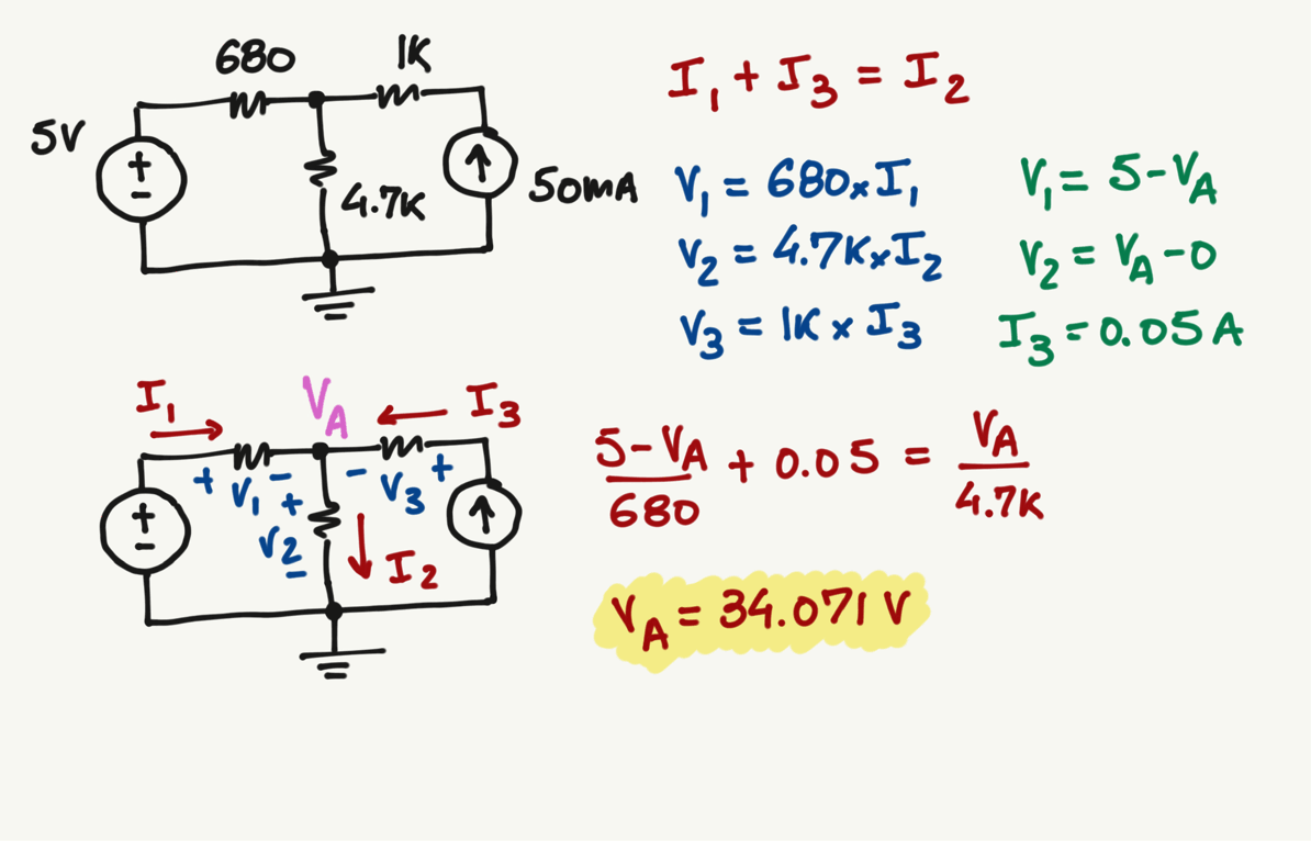 \frac{5-V_A}{680}+0.05=\frac{V_A-0}{4.7k}