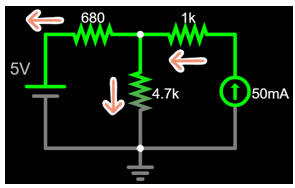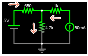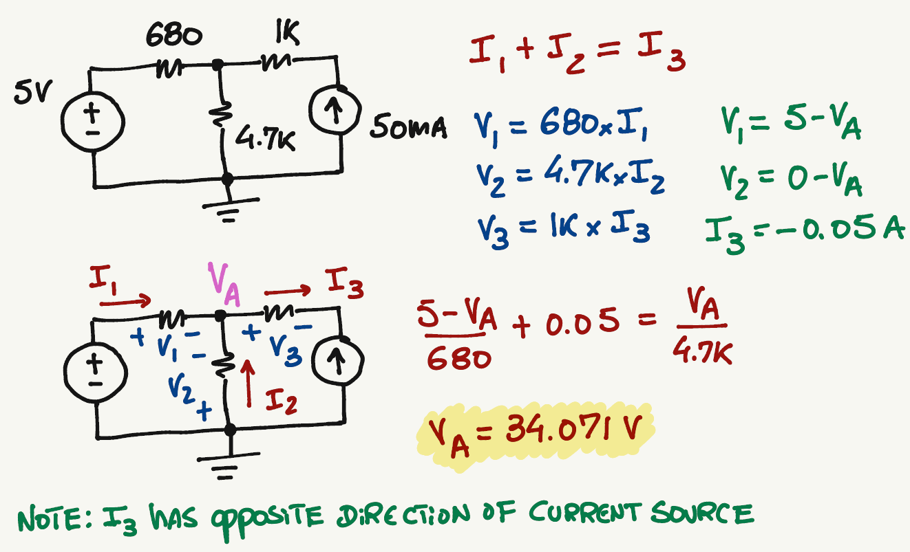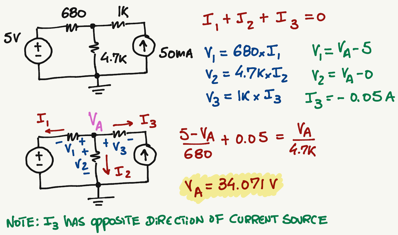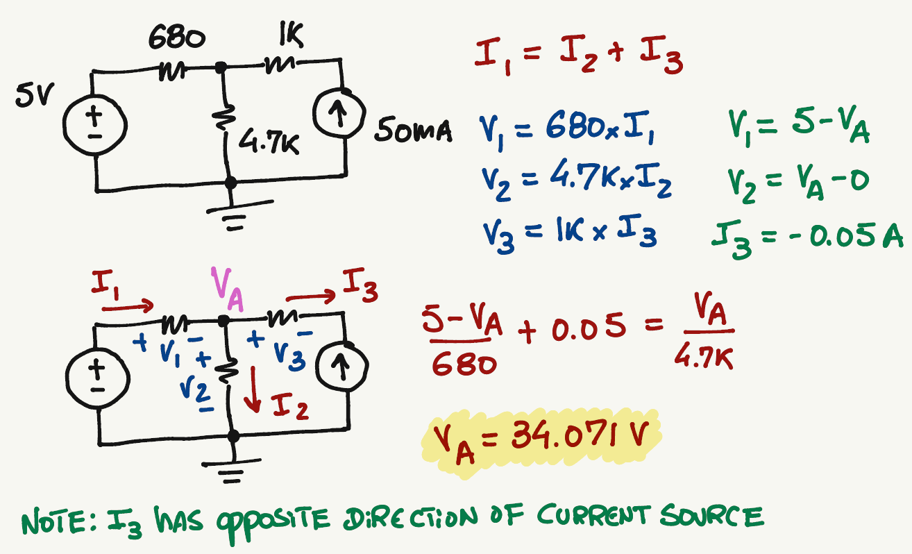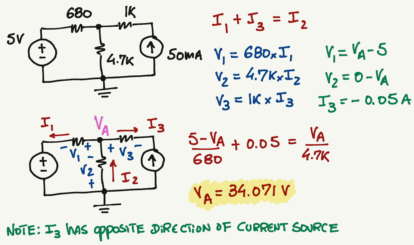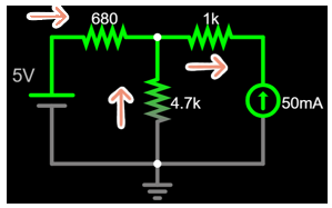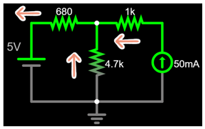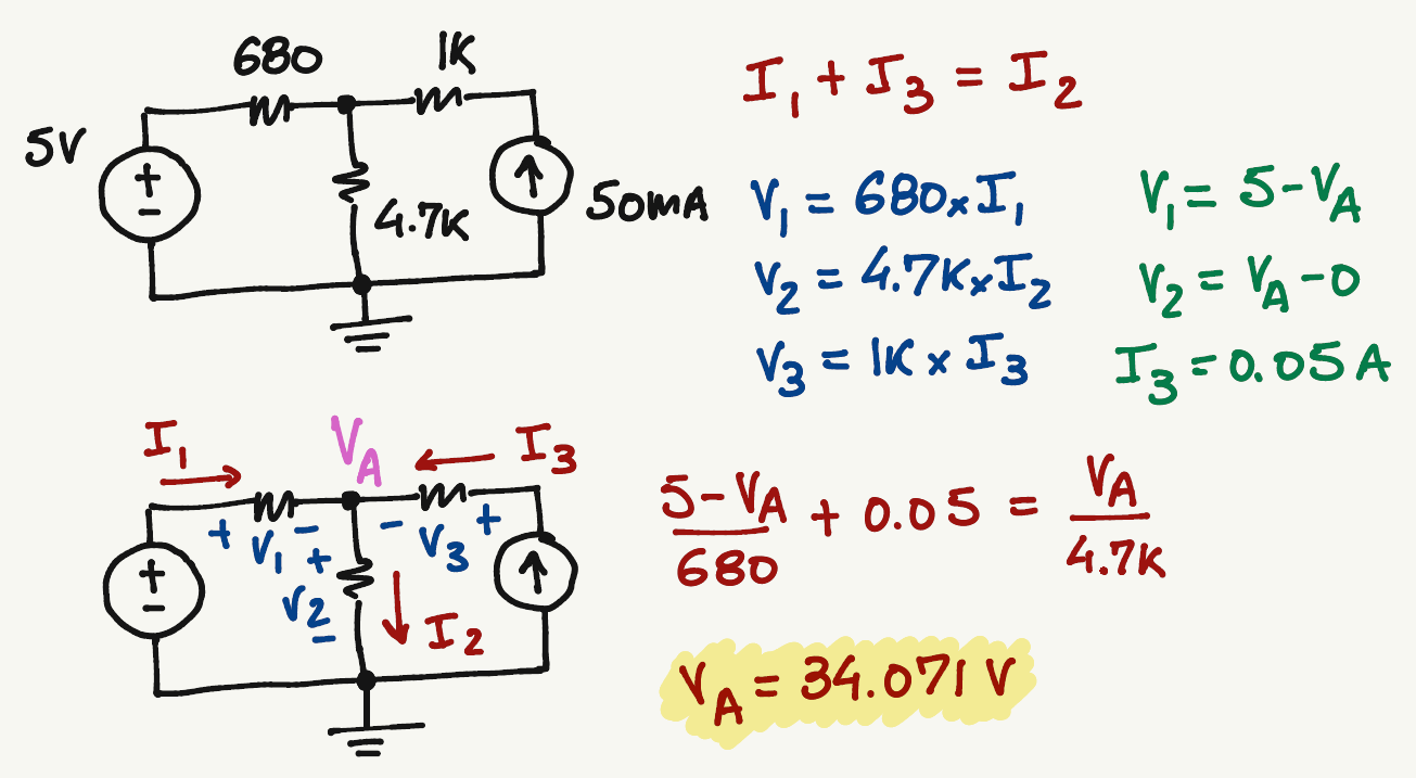 \frac{5-V_A}{680}+0.05=\frac{V_A-0}{4.7k}