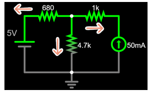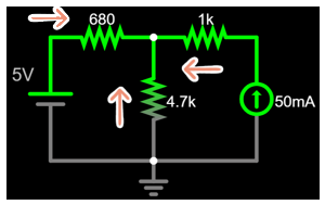 \frac{V_1}{680}+0.05=\frac{V_2}{4.7k}